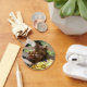 Baby orangutan sneaks into the lunch supply basket to grab an extra banana while her caretaker prepares a baby bottle of milk. This cute orangutan is one of over 300 orphans at the OFI Care Center on the island of Borneo. Orangutans are an endangered species of great ape. Monkeys and great apes are both primates.. The artist has been a volunteer for numerous years and has donated 100% of her profits on her orangutan designs to the Care Center and orangutan causes such as re-forestation planting programs on Borneo.