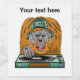 A funny cartoon illustration of a cute orangutan, making music on a turntable, with a vinyl record. This cool orangutan has a tattoo and is wearing headphones and a baseball cap.