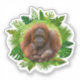 A heartwarming image of an orangutan mother cradling two babies, surrounded by a vibrant circle of green leaves. This artwork blends photography and digital art, capturing family love.