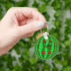 Fantasy abstract design in shades of green and red featuring a glowing reflective orb. Keychain with a customizable design for you to personalise with your own text, pictures and ideas. Created using an original photograph and digital techniques by Jess Perry.