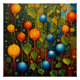 A.I. assisted print of a surreal abstract composition of spheres, orbs, globes, leaves within foliage.