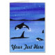 A watercolor painting of a pod of Orca against a starry, evening sky is featured on this customizable greeting card. Customize by changing the text to suit yourself!