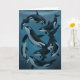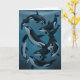 Nine killer whales swim together on the front of this card.