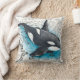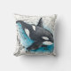 Orca Whale Blue Watercolor Nautical Map Throw Pillow