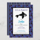 Orca Whale Purple and Blue Pattern Birthday Invitation