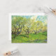 Orchard in Blossom by Vincent van Gogh is a vintage fine art post impressionism floral landscape nature painting. A farming scene with trees in a green grass backyard meadow with blooming flowers in the spring.