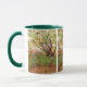 Orchard in Blossom by Vincent van Gogh is a vintage fine art post impressionism floral landscape nature painting. Trees on a farm in a grove with blooming flowers in spring. A farming rake tool is leaning against one of the trees.