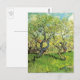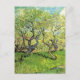 Orchard in Blossom by Vincent van Gogh is a vintage fine art post impressionism floral landscape nature painting. A farming scene with trees in a green grass backyard meadow with blooming flowers in the spring.