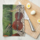 As if waiting for the musicians to arrive and begin the performance, a group of orchestra instruments is seen posed on the cobblestone clearing in a lush, green park, with the blue skies and wisps of clouds visible in the distance. This design matches other items available from MissPrinteditions at Zazzle.