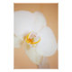 A still life photograph of a white orchid blossom on a light orange background. Image Copyright ©Kimberly J Tilley.