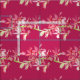 Delicate orchid watercolor botanical painting dark red pink with a hint of green to deep red patterned fabric. Original fine art Phaiocalanthe Parkside red jewel orchid painting and design by Sarah Trett for www.mylittleeden.com