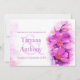 Beautiful stylized loose watercolor orchid flower with heart shaped petals in purple and pink art floral scalloped wedding invitation. Shaded in pink and purple radiant orchid hues. Edit this invitation with your own words. Unique design and original watercolor stylised orchids painting by Sarah Trett.
