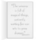 Features original photograph; "The universe is full of magical things, patiently waiting for our wits to grow sharper." -- Eden Phillpotts