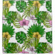Orchids and palm leaves, pink, yellow, green and w