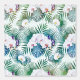 Exotic orchids and tropical foliage on a white background, featuring botanical patterns and Hawaiian motifs. The colour palette includes teal, peacock blue, light blue, orange, green, light green, yellow, brown, grey, and white. This trendy, stylish illustration is perfect for everyday wear or home decor, embodying the essence of summer, sun, beach, femininity, and glamour.