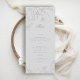 Set against a soft ivory background, the menu showcases classic calligraphy typography with graceful flourishes, creating a sophisticated and timeless aesthetic ideal for formal and traditional weddings. Perfect for place settings at a seated dinner or reception, this elegant menu card adds a polished finishing touch to table décor while maintaining a cohesive look throughout your wedding stationery.