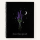Un jet de lavande contre une nuit étoilée et une lune de croissant. La lavande est utilisée depuis des lustres pour améliorer le sommeil. Cela pourrait faire un joli Dream Journal ou un endroit pour vos pensées de nuit.