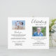 Programme funéraire mettant en vedette sur le devant une photo de votre être cher, son nom, ses dates, le lieu du mémorial et la date de l'événement. A l'intérieur se trouve une nécrologie et un ordre de service ; et au dos une autre photo, une note de remerciement et le deuxième lieu pour après les funérailles. REMARQUE : Ceux-ci viennent comme un morceau plat de papier de qualité, vous aurez besoin de les plier vous-même.