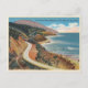 This vintage Oregon coast reproduction of a postcard from the 1940s shows the coast highway winding among the hills along the shoreline with the caption: "The Oregon Coast Highway on the Shores of the Pacific." Beautiful scene in retro colours.