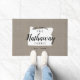 Modern farmhouse personalized doormat with your family name inside your state map. Faux burlap canvas texture background. Click Customize It to add your own text and images and create a unique one of a kind design!