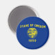 This design features the state flag of Oregon, which is in the Pacific Northwest region on the West Coast of the United States. The state is bordered by Idaho, Washington, California and Nevada. The flag of Oregon has a navy-blue background with a gold seal and text; it was first officially used in February 1925. The flag contains the words "State of Oregon" and the year 1859, which is when Oregon first became a state.