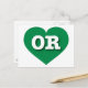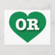 This postcard features an eco-friendly green heart containing the bold, white, upper case letters OR, the official abbreviation for Oregon, the beaver state. The reverse side of the postcard is blank, awaiting your handwritten sentiments or customized text.