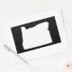 The shape of the state of Oregon in black and white. You can change the background colour or add a custom souvenir text message.