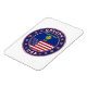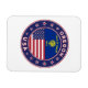 Badge of Oregon with flag of Oregon and flag of USA colors, rounded shape.