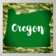 Green silhouette of Oregon state with modern script overlay on green camo background