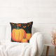 L'oreiller à jetons est montré en feuilles d'automne et imprimé citrouille avec une couleur arrière - plan noire. Customisez ce coussin ou achetez tel quel.