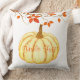 L'oreiller à jetons est montré en feuilles d'automne et imprimé citrouille avec une couleur arrière - plan blanche. Customisez ce coussin ou achetez tel quel.
