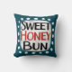 Un joli design typographique qui dit "Sweet Honey Bun". C'est du texte en noir et rouge sur un rectangle avec des points blancs amusants autour, le tout sur un arrière - plan turquoise.
