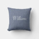 Des arcs bleus fascinants avec des points blancs décorent cet oreiller à jetons monogrammés.