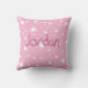 Personnalisez ce Coussin de petite fille "One of a Kind" ! Il présente une vache longhorne comique portant un joli cabot violet sur un Arrière - plan rose clair et blanc étoile et entourée par les mots...."Petite Femme" Ce Coussin "Petite Femme" a une couverture et une Lampe en polaire correspondants ! Design D'Art Original Par L'Artiste Kerry Miller !