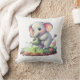 Ceci est une image d'un oreiller avec un éléphant de dessin animé mignon dessus. L'éléphant est gris clair avec de grandes oreilles roses et des joues rosées. Il tient un petit arrosoir vert et arrose de petites pousses vertes dans un parterre de jardin. Il y a aussi de petites fleurs et de l'herbe autour de l'éléphant