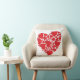 L'oreiller est en blanc avec une empreinte de coeur de Saint-Valentin rouge. Customisez ce coussin ou achetez tel quel.