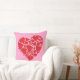 Cet oreiller de lancer est montré en rose avec une empreinte de coeur de Saint-Valentin rouge. Customisez ce coussin ou achetez tel quel.
