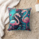 Flamant rose Noël Jetez l'oreiller avec une famille de Flamants roses prêts pour les vacances. Couleurs vives de rose et de teals. Profitez de ce Noël / coussin de vacances toute la saison!