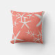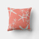 Grand coussin carré avec étoile de mer blanche et maigre sur la tropicale, couleur rose saumon / corail des deux côtés. Le thème de la mer, de la nature est parfait pour toute maison de plage, condo de bord de mer ou pour ajouter une sensation d'été à votre maison.