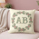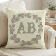 Ajoutez du charme à n'importe quel espace avec cet oreiller décoratif jaune pastel qui présente un motif de croix discret, une couronne florale de roses roses et de feuilles vertes, ainsi que vos initiales personnalisées au centre. Élégant, féminin et totalement personnalisé. Parfait pour la décoration de la maison ou comme cadeau.