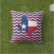 Oreillers décoratifs Texas Blanc et Bleu Rouge : Un magnifique motif en chevron zigzag bleu et blanc sans soudure avec le contour de l'état du Texas rempli avec le drapeau du Texas! Fait une belle décoration pour les Texans fiers!