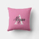 Oreiller élégant rose avec écriture à monogramme mettant en vedette une disposition élégante de nom et d'initiale de monogramme sur un joli fond rose. L'oreiller est facile à personnaliser en tapant le nom et l'initiale de votre choix dans le modèle de personnalisation en ligne avant de commander. Le texte se copie automatiquement de l'autre côté de l'oreiller pour afficher le nom et l'initiale identiques de chaque côté. Un bel oreiller pour un cadeau d'anniversaire doux ou une faveur de douche de mariée.
