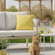 Un oreiller décoratif jaune vif parfait pour votre terrasse. Ajoutez confort et charme à la fois à votre coin salon extérieur. Le design illustre des tranches de citron Meyer superposées les unes sur les autres.