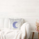 Oreiller jeté gris clair et bleu pâle avec des étoiles et une lune. Cela serait joli n'importe où, comme dans une nurserie de bébé ;