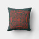 Jetez l'oreiller avec l'illustration graphique ornementale rouge sur arrière - plan vert foncé.