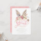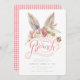 Cette amusante invitation de Brunch de Pâques présente des oreilles de lapin de couleur aquarelle au-dessus des mots "Brunch de Pâques". Tous les détails de l'invitation sont directement ci-dessous sur un arrière - plan blanc éclatant. Le côté arrière est un motif de coordination rose en vichy.