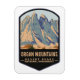 A vintage travel badge design of Organ Mountains - Desert Peaks National Monument located in Mesilla Valley in the state of New Mexico