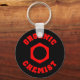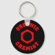 Organic Chemist - black keychain with red collegiate style lettering and benzene ring.