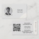 Introduce yourself in an elegant and modern way with this minimalist organic business card. The front of the card features a photo cut into a circular shape, surrounded by a soft texture that mimics kraft paper, adding a natural and professional touch. The design is complemented by a highlighted title for the name and a subtitle below the photo, both aligned with the curves of the design. On the back, you'll find all the contact information and a convenient QR Code for easy digital access, along with a fluid shape in light tones that harmonizes with the overall design. This card is perfect for professionals seeking a sophisticated, natural, and functional presentation.