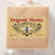 Organic honey label over honey-striped background, with the date and weight of the honey. Use a round label on the cap for the name and address of your apiary. Personalize with your type of type of honey: Raw, Clover, Local, All Natural, Golden, Comb. Optionally, change the text font when you "Customize It" - click on the font icon and choose the "standard" or "script" font category at the top of the list.